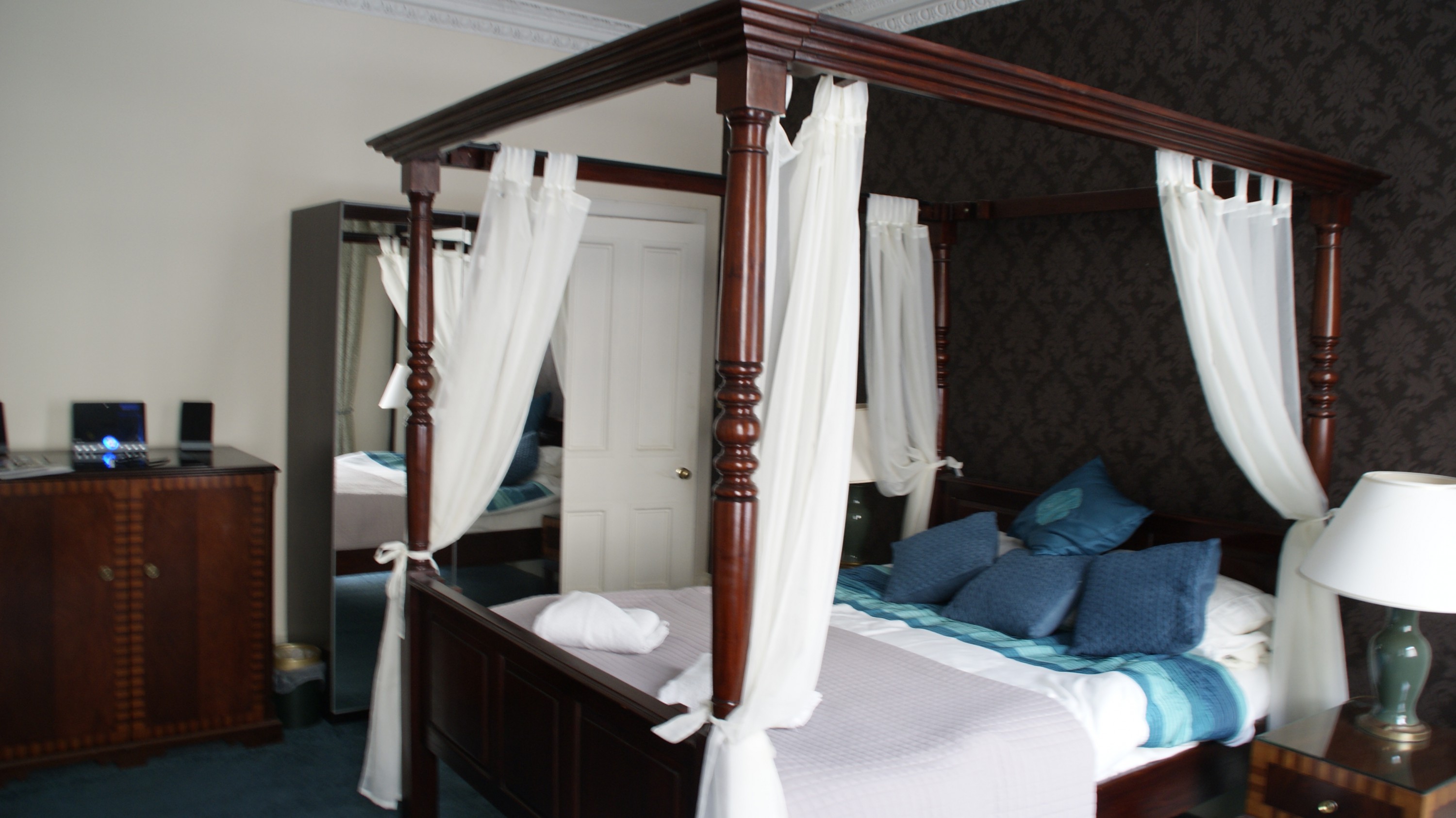 Als wir dann nach knapp 90 Minuten Flugzeit in Edinburgh landeten waren wir auch ein wenig froh. Als aus dem Flugzeug ausgestiegen sind, wehte uns eine steife Briese um die Nase. Die sollte uns noch für den Rest der Reise erhalten bleiben. Unser erster Weg ging zur Autovermietung um unsere Überraschung in Empfang zu nehmen. Und dann ging es ab auf Straße. Links. Als die falsche Straßenseite würde man meinen. Nach gut einer viertel Stunde hatten wir aber dreh raus. Zumindest eine von uns. Ab jetzt hieß es: Diana fährt, Steve navigiert. Nur zu blöd, dass Steve im Themengebiet ‚Karte und Kompass‘ bei der Bundeswehr keine all zu großen Erfolge vorzuweisen hatte. Das führte unweigerlich zu einigen Irritationen und Extrarunden durch Edinburgh. Auch eine Art des Sightseeing. Nachdem wir einige Straßen mehrmals befahren haben kamen wir endlich in der ersten Unterkunft an. Wir wurden sehr herzlich und offen Empfangen. Nach einem kurzen Plausch wurde uns dann unser Zimmer gezeigt. Unser erster Eindruck: Wow. Ein Himmelbett mit einer Matratze aus Wolken, ein sehr schickes und schlichtes Badezimmer.